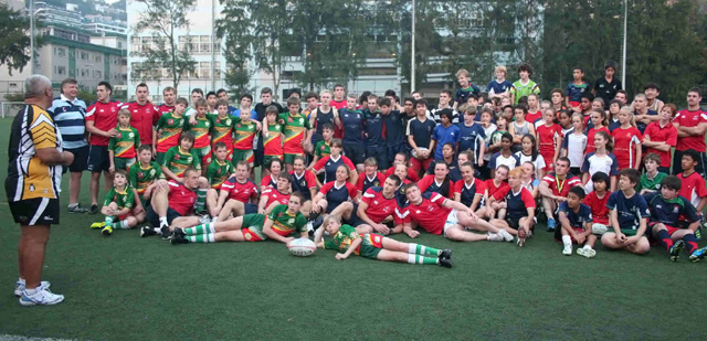 Next up, an HSBC grassroots session arranged by Fasttrack and attended by HSBC Ambassadors Jason Robinson and George Gregan. The session took place at Good Hope school where 20 girls were put through their paces with excellent help from members of the Hong Kong Women’s team. The session was based around short sided game-like practices, to maximise participation, and all the coaches were very impressed with the enthusiasm, athleticism, and technical ability of the girls taking part. The session finished with a “foot race” between our own Jason “Billy Whiz” Robinson and all challengers.