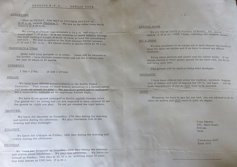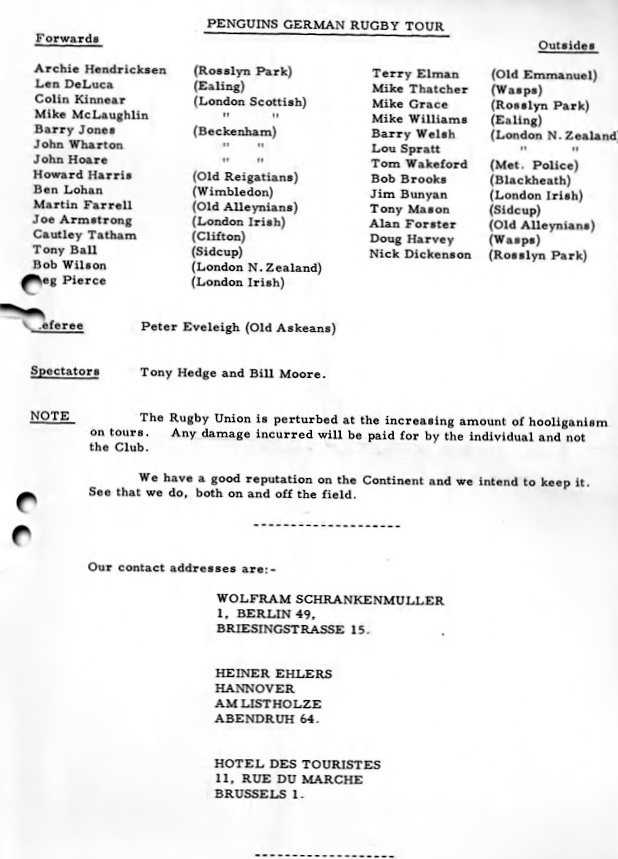 It was during this tour that the club adopted the motto On court le ballon a la main – They run with the ball in their hands.