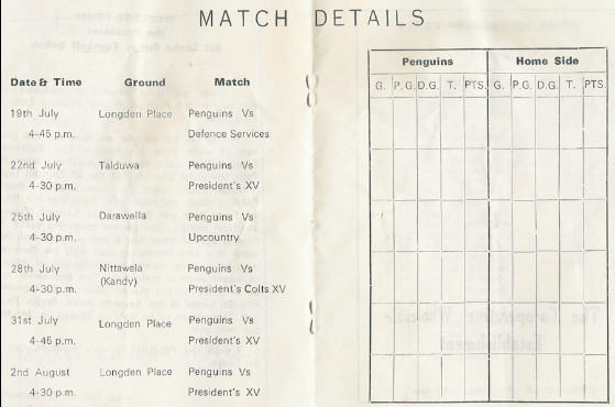 | 2nd August 1979 | Penguin’s beat SLRFU Presidents XV |