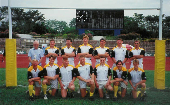 Front row: Tim Smithers (Rosslyn Park), Tim Jensen (Oxford University), Kern Yates (Wakefield), John Kerr (Watsonains - Captain), Paul Roblin (Rosslyn Park), Tim Ewington (West Hartlepool), Arwel Thomas (Swansea)