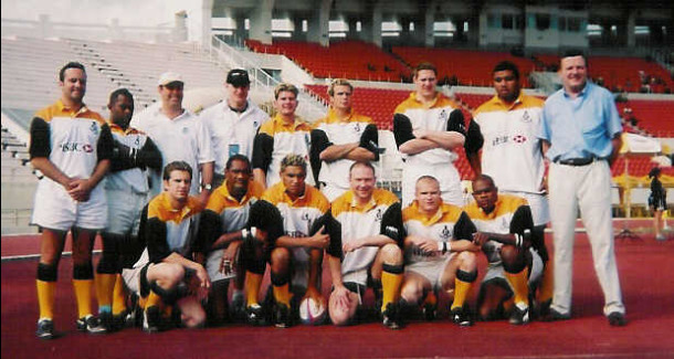 Front row: Craig Culpin (Watsonians), Sailosi Nawavu (Baravi Exiles, Fiji), Alan Bunting (Bay of Plenty, Captain), John Kerr (Watsonians, Scotland 7s), Tim Walsh (Wests, Australia 7s), Asiveni Latumailagi (Nadi, Fiji)