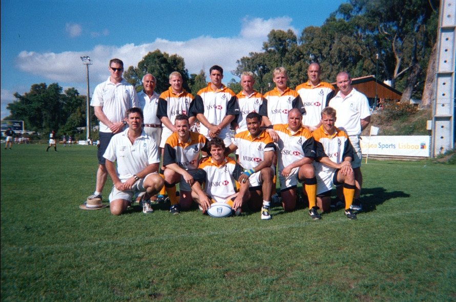 Front row: Bill Calcraft( Tour coach), Mark Meenan (Ebbw Vale and England 7s), Tim O’Brien (manly and Australia 7s), Waisale Serevi (Mont de Mason and Fiji), Conan Sharman(Edinburgh and Scotland 7s), Shane Thompson (Montreal Barbarians and Canada).