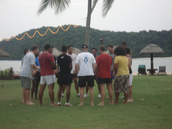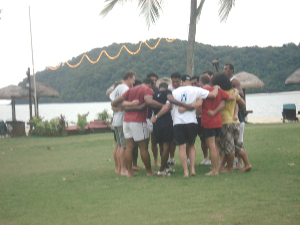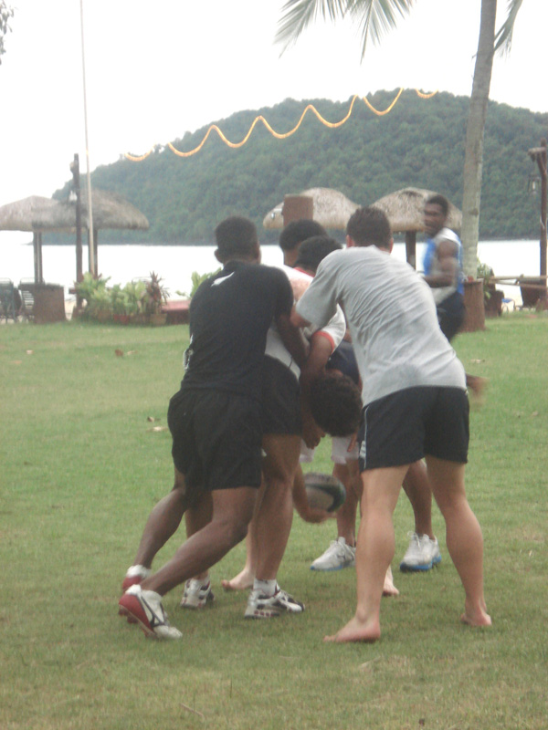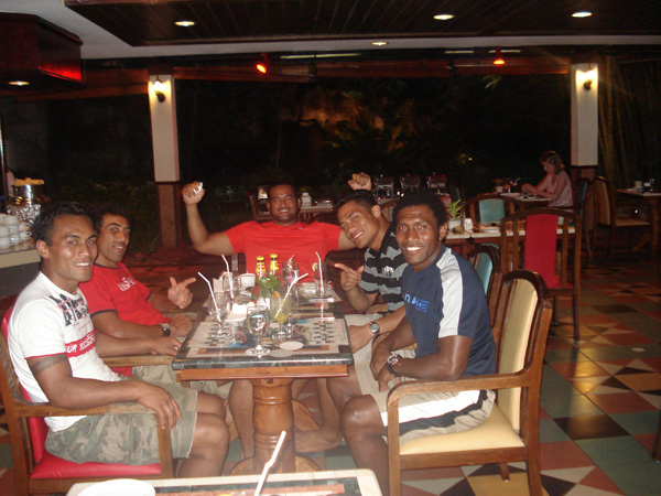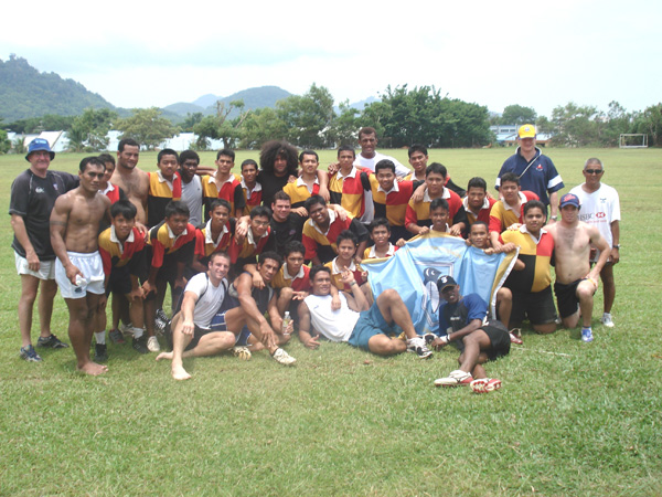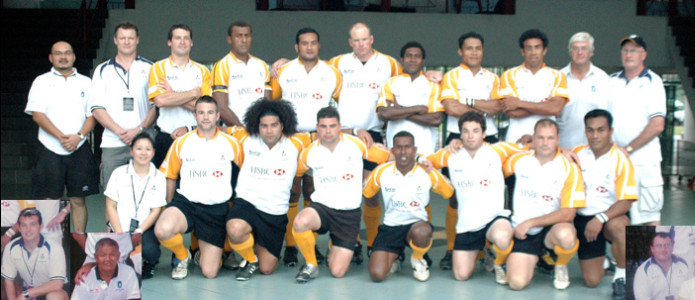 Back row: Marc Daniels (Physio), Craig Brown (Manager), Ryan Barker (North Shore, North Harbour 7s), Mesake Davu (Fiji, Fiji 7s - vice captain), Egelani Fale (Savaii Samoa, Samoa), Sam Paddison* (Mahurangi), Nasoni Rokobiau (Natisori, Fiji 7s), Mika Senio (Marist St Joseph’s, Samoa 7s), Alapasa Cordtz (Marist St Joseph’s, Samoa 7s), David Townsend (HSBC Liaison), John McKittrick (Coach)