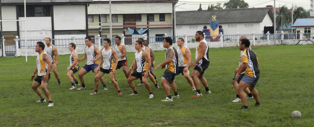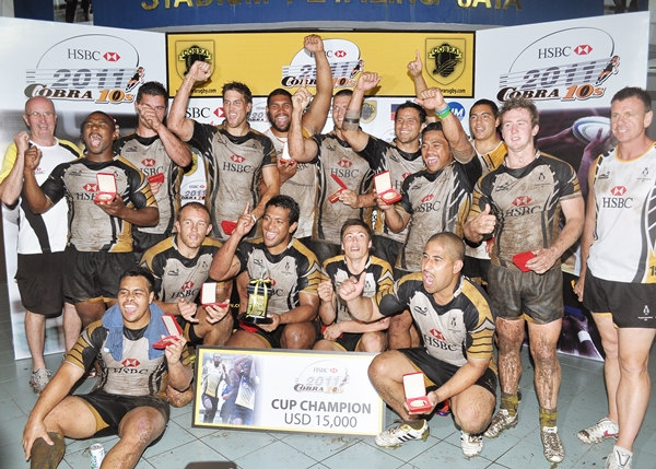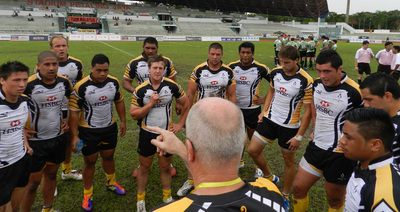 The team was drawn in pool F as the top seed which meant a late start to matches. On the Friday night the team, although playing a bit individually, managed a respectable win over the Casurina Cougars, our Darwin based opponents, and retired happy with the first win, but plenty to think about for the next two days. The second match on Saturday morning against Indonesian Harimau was similar to the first and all knew we would face a much stiffer challenge against our close friends from COBRA in our final pool match. The COBRA match was a beauty. Both sides committed to defence but also looking to break the line when they could. The HSBC Penguins got out to a 12 - 0 lead with about 4 minutes remaining in the match. A yellow card against the Penguins brought COBRA right back into the match. With a minute to go COBRA were kicking a conversion to draw at 12 all and only the post stopped this happening. The Penguin team was caught asleep and from the restart, COBRA won uncontested ball and were 5m from the Penguin line with full time up. Some desperate defence from Frank and Karl retrieved the situation and enabled the ball to find its way to touch thus ending an enthralling contest 12 - 10 in favour of the HSBC Penguins.