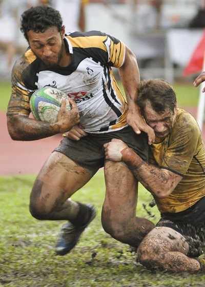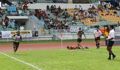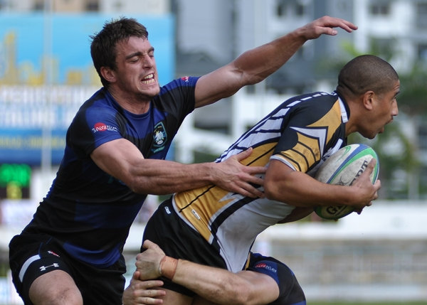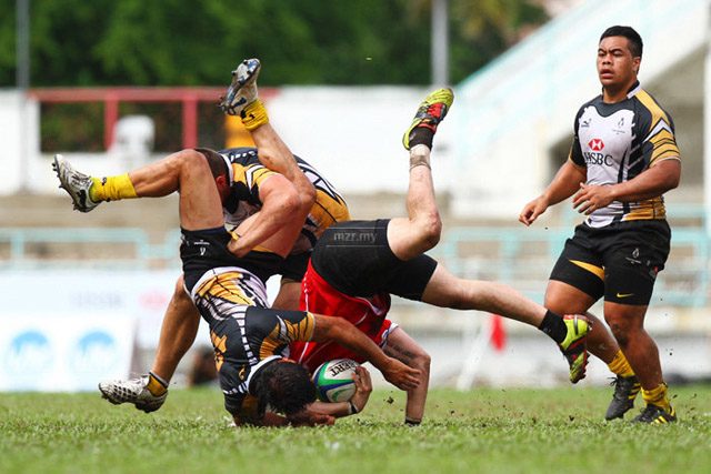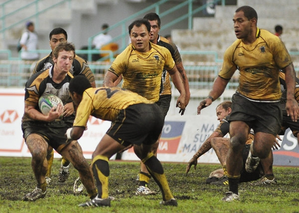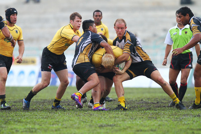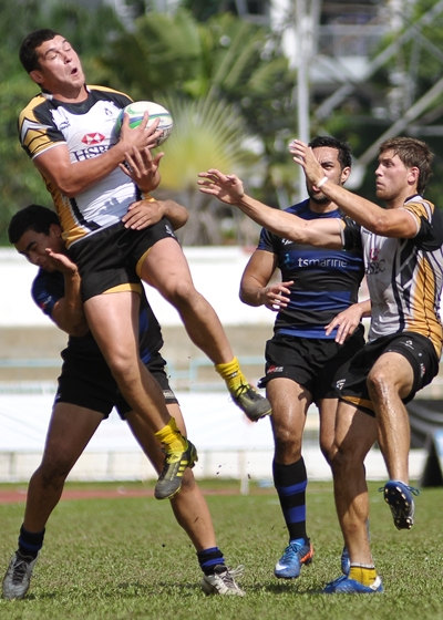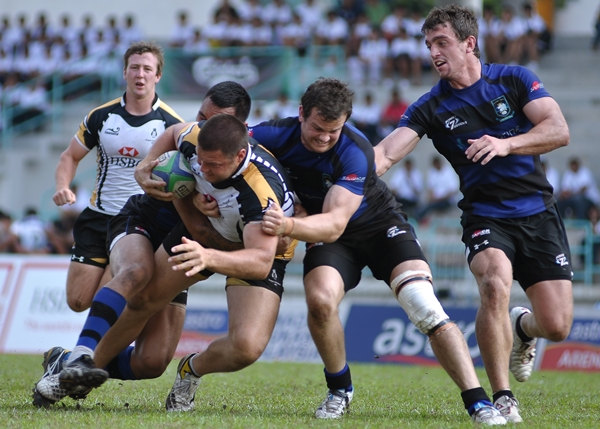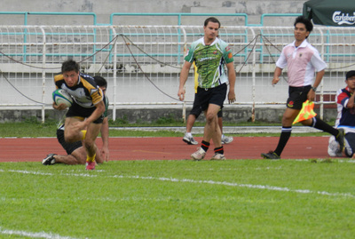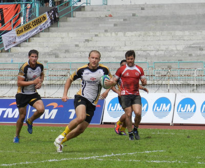 As per the previous week in Singapore the HSBC Penguins squared off against Borneo Eagles in the semi-final. At the end of a very physical opening 10 minutes the HSBC Penguins lead 5-0. Control was maintained throughout the second spell and again only a last minute try by Borneo made the margin close. Congratulations to both teams who exhibited strong defences as the rain bucketed down. Penguins advancing to the final 17-15.