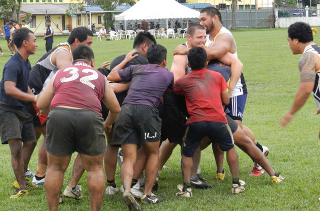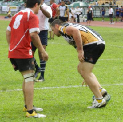 It is rare that the Penguins do not play the Borneo Eagles at some stage during our November tour and 2011 was no different. Next up a semi-final against a Borneo Eagles team with plenty of Kiwi fire power in their ranks. From the kick off the Penguins scored out wide through Frank Wagenstroom, with a barn storming running (try converted) but lapses in concentration and urgency on defence saw Borneo take a 12-7 lead into the break. Borneo came out guns blazing in the second half and an early try saw them out to 17-7. The Penguins replied almost immediately with another try to Frank Wagenstroom to close to 17-12 but in the defining moment of the game, Phil Tuigamala chipped kick ahead for what could have been a decisive try only to be taken out late. The ball bounced into the hands of a Borneo player who ran 80 metres to score. A late try to Tua Saseve narrowed the gap to 24-17 but the time had run out and the Penguins were eliminated.