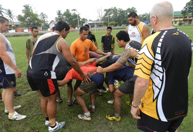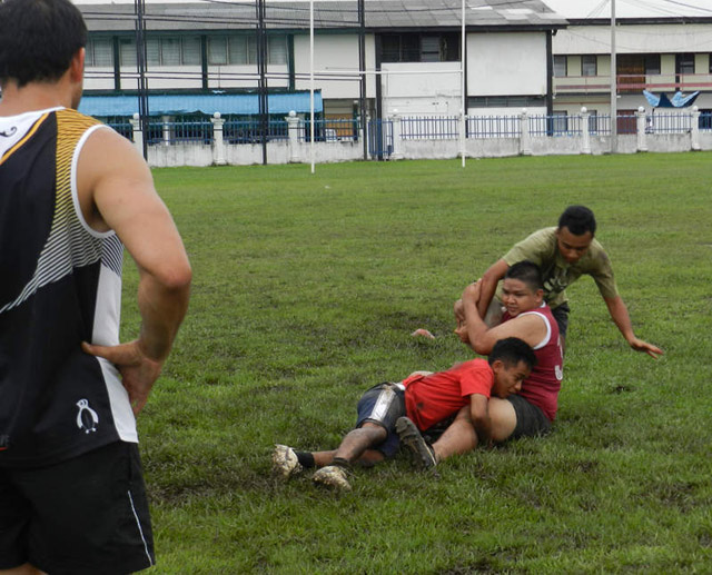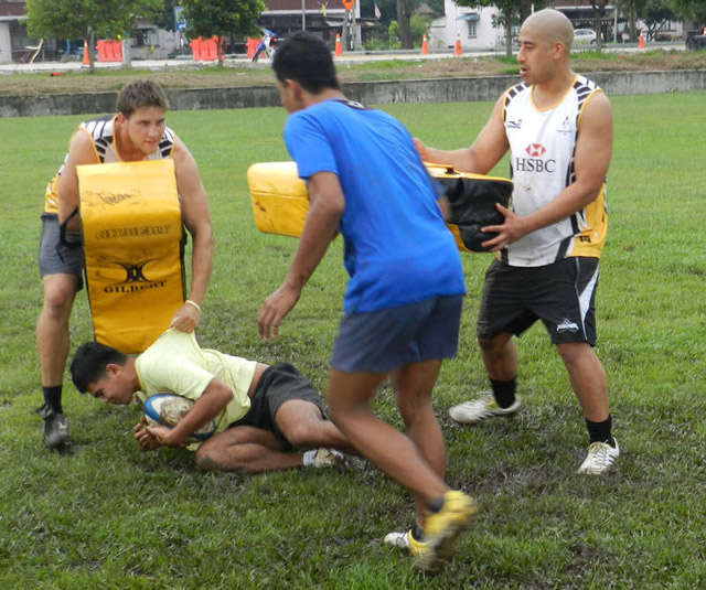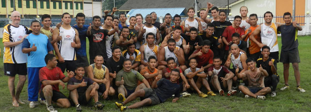 Captain Willie had the team up bright and early on Monday morning and we departed from Singapore for Johor mid-morning and after grabbing some lunch were on the road to Port Dickson on Malaysia’s West Coast by noon. On arrival the team had some down time to explore the local area, including a welcome swim in the pool and dip in the sea. The plan for the next two days was two training runs, a game against the local army team and to run a coaching session for local school children.