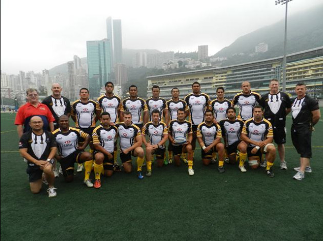 Back Row: Craig Wootten (HKFC Tens Tournament Director), Liam Barry (Coach - North Harbour, Blues, NZ All Blacks), Timo Tutavaha (Inglewood, Taranaki), Shahn Eru (Wainuiomata, Wellington 7s & XVs, Hurricanes Dev, NZ U20), Vili Fihaki (Mahurangi, Counties-Manukau XVs & 7s, Chiefs and Blues Dev), Leka Tupuola (Hutt Old Boys Marist, Wellington Dev, Hurricanes Dev, NZ 7s), Nafi Tuitavake (Massey, North Harbour, Blues, NZ U20s, NZ 7s), Mat Luamanu (North Shore, North Harbour, Blues, NZ U20), Chad Tuoro (Te Puna, Bay of Plenty, Counties-Manukau, NZ 7s), Matt Vant Leven (Fraser Tech, Waikato, Chiefs), Craig Brown (Manager), Rod McIntosh (Asst Coach - Waikato, NZ U17, Hong Kong XVs & 7s)