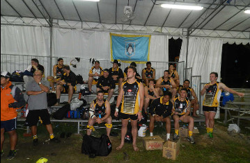 The semi-final was against Rugby Ecosse, a Scotland 7s team training for the start of the IRB world series. Again a close encounter was expected. The condition did not lead to a lot of ball movement but both teams did try to move the ball to space to move forward. The Penguins scored first I the corner and with kicking near impossible the score stood at 5 - 0 with about 2 minutes to go. Some great defence again from Codie Rei and Marvin Karawana joined in with a couple of big hits as well. Eventually an Ecosse player got a little space and did remarkably well to run over 50 meters pass a couple of Penguin defenders to score under the posts. The only place where it was possible to kick a conversion was under the post the Ecosse player scored under and the conversion was successful. The Penguins then had to chase the game and although they had a couple of half chances they could not get the score to win and lost 5-7 to the men from Scotland.