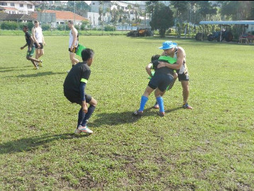 The session coaching the local school boys was set for Tuesday morning and thanks to all who turned up it was a public holiday so some could not make it. 60 boys aged from 12 to 16 duly assemble and the Penguin team split them into 3 groups and kept them busy with a wide range of activities from passing drills, ruck and contact area drills, defensive alignments and position, a kicking competition and attacking the space with support scenarios.