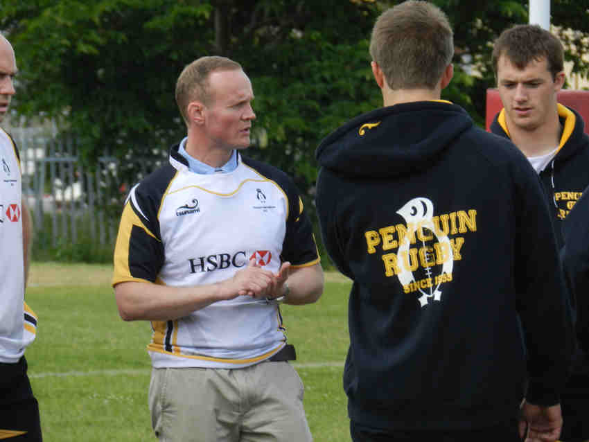 Back Row: Craig Brown (CEO, Penguins), Conan Sharman (Coach - Watsonians, Edinburgh and Scotland 7’s), John Kerr (Asst Coach - Watsonians, Edinburgh and Scotland 7’s) , Ben Fisher (Asst Coach - Boroughmuir / Scotland Club XV), Nyle Godsmark (Edinburgh Accies, Scotland 7’s Development squad), Liam Steele (Stewarts Melville FP, Scotland 7’s Development squad), Chris Scott (Watsonians, Scotland 7’s Development squad),, Callum Wilson (Loughborough, England Students), David Townsend (Senior Vice President Penguins), Hugh Hogan (St Mary’s, Leinster A), Iain W Sinclair (Manager - Watsonians, Edinburgh, Scotland A), John Sinclair (Player Liaison - (Past President - Glasgow High/Kelvinside), Vincent Bramhall (Secretary Penguins)