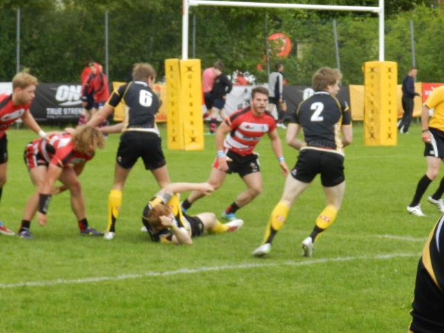 It was an early start following the previous evening's inaugural Scottish Penguins Reunion Dinner, with our first match of 4 pool games against the Scottish Samurai’s at 1000hrs. Despite some abrasive running from Callum Wilson and some sterling defensive work from Jack Watson, the Samurai’s came out narrowly on top after a last minute try to win the first pool match 21-19. This meant we had to win the remaining 3 pool matches which included the tournament favourites and former champions the British Army. The Penguins went on to win the next 2 pool matches against the “Zoo mighty Peth” and “Wooden Spoon” quite comfortably thanks to the metronomic kick offs from James Love and strong individual performances from Nyle Godsmark and centre Sam Randle. Unfortunately, we lost our skipper Steve Hamilton in the third pool match which was not ideal with potentially 3 matches remaining. Fortunately we had plenty of power upfront to make up for the rangy Hamilton with the likes of Hugh Hogan (St Mary’s) and Tom Hart (Watsonians).