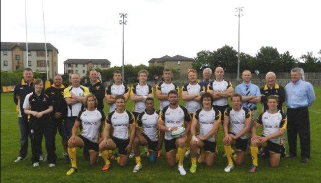 Front Row: James Love (London Scottish), Tom Hart (Watsonians, Scotland 7’s Development squad), Tahir El Mahdi (Leicester Tigers), Steve Hamilton (Captain – Rotherham and England Counties), Sam Randle – (Brunel University), Rory Steele (Watsonians, Scotland 7’s Development squad)Jack Watson (Watsonians, Scotland 7’s Development squad)