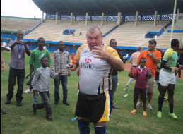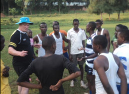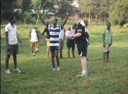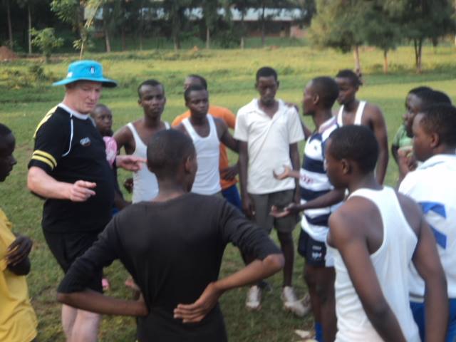 The second group went to St John Don Bosco School in Kigali to coach around 200 youths aged from 8 to 18 years. Some of these youngsters were complete beginners, whilst others possessed no little ability. The U16 and U18 groups in particular, looked to have some very talented young players. Four groups were split up by age, with Coach Harris taking the 12 years and under group, Coach McKittrick taking the U14s, Coach Brown the U16s, and Coach Patel the U18s. The sessions proved a great success and lasted several hours despite the 30°C heat. Plenty of water breaks were the order of the day – especially for the coaches! It is said, that as a coach, one is constantly learning, a maxim to which Coach McKittrick will surely subscribe! Even he, with his vast experience of coaching the highest levels of the game, was confronted in Kigali with a new and perplexing situation; one not covered in any coaching manual.