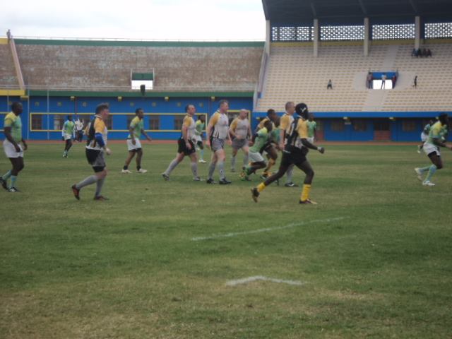 Upon the arrival of the group who visited the orphanage at St. John Don Bosco School, and in preparation for the test match the following day, the squad engaged in a very brief run out at dusk. The practise session was aimed at sorting out some line-outs, crafty back moves, and plays in certain field positions, whilst trying to conserve as much energy as possible. It was a half-hearted effort in truth, as fatigue had more than taken over by that point, and re-hydrating beers were long overdue. Eventually we returned to the hotel for a swim and tidy up, following which the KPs retired to an excellent local restaurant with their hosts. Suffice to say, an afternoon of exertion in the fierce sun, and the anticipation (some might say trepidation) of a big game the next afternoon, saw a pleasant but extremely quiet dinner taken, and an early night - well, with the exceptions of T. McKitty, who made up for lost time, and an injury-struck Uncle Buck.