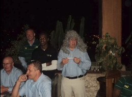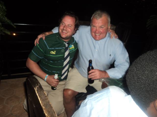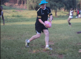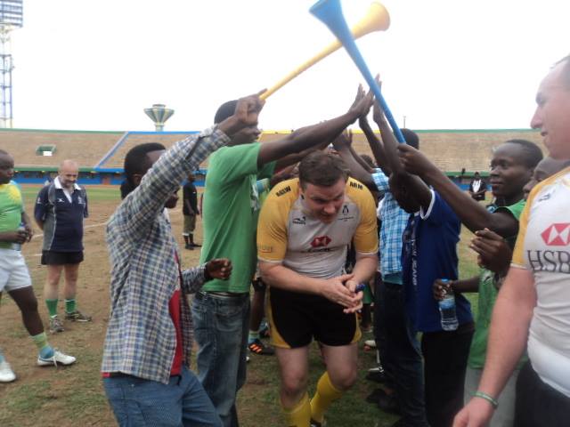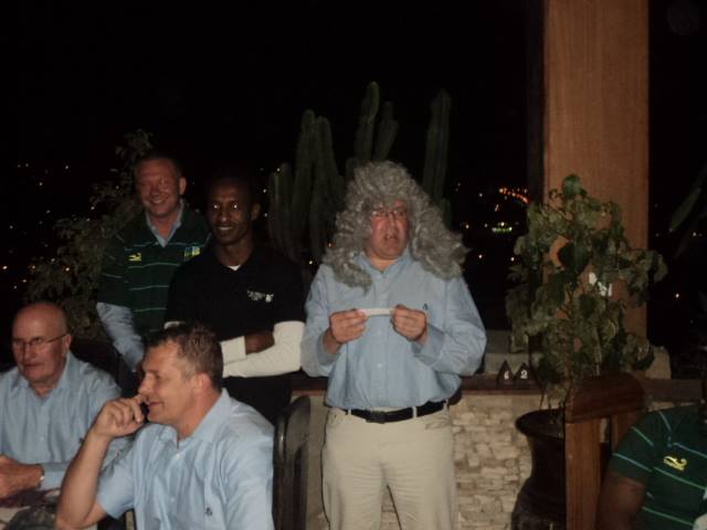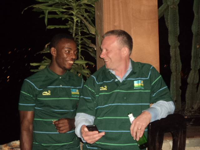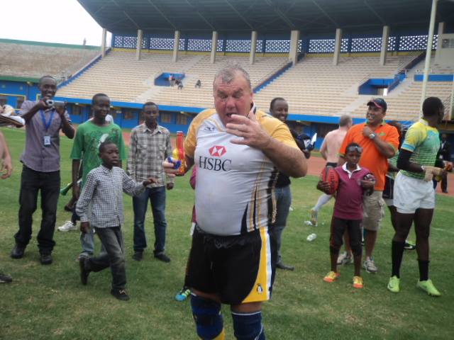 After a wash up and rehydrate, the evening comprised an after match dinner, with all the right ingredients: food (including goat, no less), beer; boat races; speeches; presentations; a summary court for the departing Raeban (with charges for his heinous crime read in Rwandan byJudge Wallace), and a virtuoso display of Japanese by Cobie on his 61st Birthday. This was rugby fellowship at its finest. Next stop - the nightclub. Lunch-time the next day, the Rwandans declared themselves undefeated, long after the KPs had gone home for cocoa - well, apart from Marti, who ran them close!