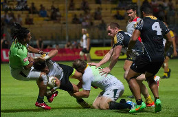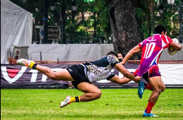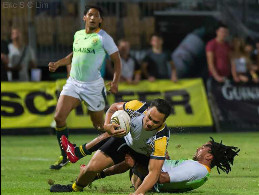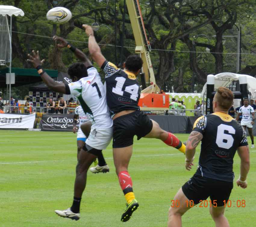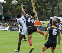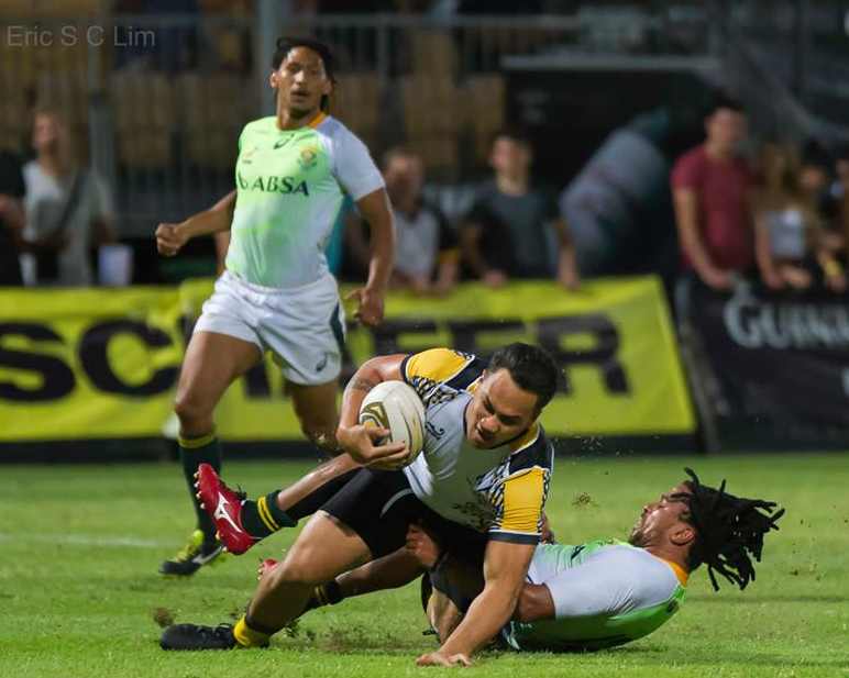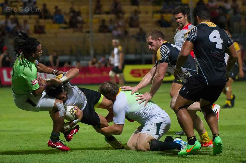 Next to the semi-final against defending champions Borneo Eagles. Over the years these two teams have played each other many times with many close score lines. In a match where neither side was prepared to take a backwards step and in a fast paced encounter, the Penguins went 14-0. Borneo came back into the match and scored two well worked tries of their own so heading into the last ¼ of the match it was Penguins leading 14-10. After absorbing the Borneo attached, the Penguins had their chances and took it with some smart support play, to put Nafi Tuitavake away on a 45 meter run to score under the post, and seal the win. A great match and a famous Penguin victory – now attention turned to the final against South Africa who had Cecil Africa, Kyle Brown and Frankie Horne in their side.