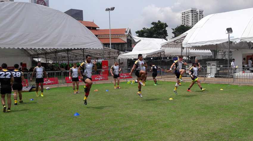 The final game on Saturday was the last 16 clash against the Singapore national team. The Penguins defended aggressively and when in possession attacked from the outset with superb handing, backing up and classic 7s play lead to a good win, and plenty of game time for all.
