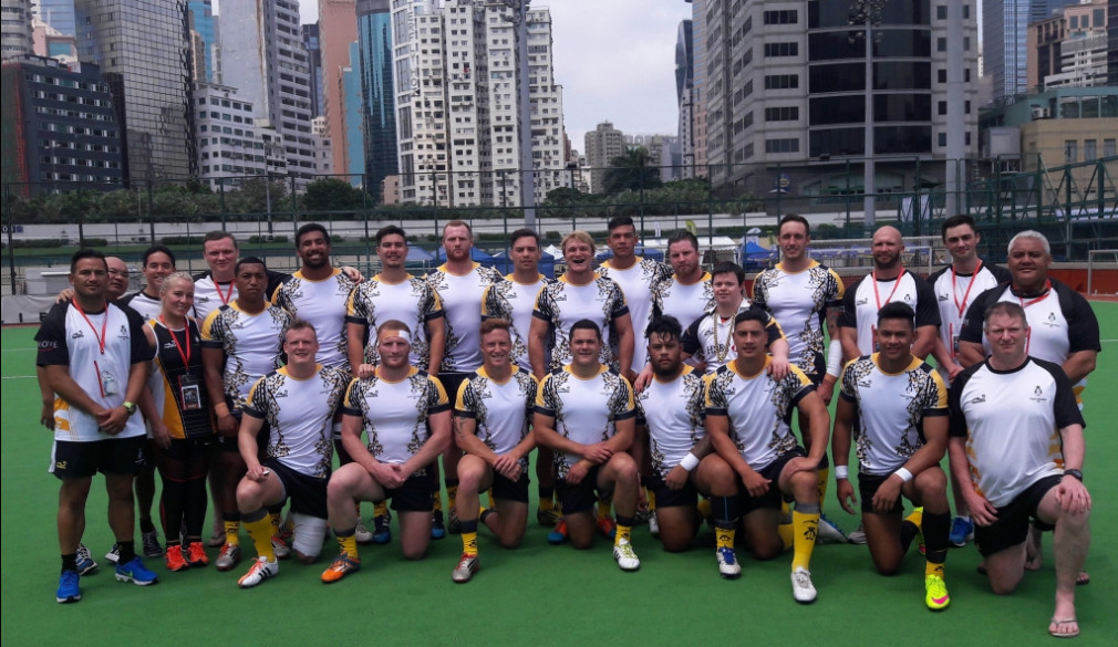 Back Row: Willie Walker (Co-Coach – Highlanders, Worcester, NZ Maori), Marc Daniel (Physio), Tan San Chuan (Physio), Sue Olovsson (Masseur & Strapper - Sweden XVs), Graeme Inglis (Co-Manager – Watsonians, St Marys), Shalom Suniula (Belmont Shore, Junior Kiwis, USA 7s & XVs), Josh Tyrell (Hamilton Marist, Waikato 7s & XVs, Samoa U20), Jackson Garden-Bachop (Northern United, Wellington XVs & 7s, Hurricanes Dev, NZ schools & U20), Brad Tucker (Christchurch, Canterbury 7s), Antonio Kiri Kiri (Co-Captain - Old Boys Marist, Manawatu XVs & 7s, NZ 7s), Matt Polwart-Matich (Western Sharks, Auckland 7s & XVs, Blues Dev), Ben Nee-Nee (Pakuranga, Auckland, Blues Dev), Adrian Smith (Massey, North Harbour), Sean Brown (HKFC), Jordan Simpson-Hefft (Upper Hutt, Wellington XVs & 7s, NZ Dev 7s), Scott Waldrom (Co-Coach – Taranaki, Hurricanes, NZ 7s, All Blacks), Charlie Mansfield (Social Media Manager), Deano Herewini (Liaison Manager)